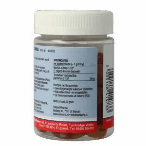 Cichoreiwortelvezels (Fructo-oligosacchariden (FOS)), Water, Natuurlijke Aardbei- en Sinaasappelsmaak, Getyntaliseerde Lactobacillus plantarum L-137, Zuurteregelaars (Citroenzuur & Natriumcitraat), Bacillus subtilis, Zwarte Wortelconcentraat, Kleurstof (Paprika-Extract), Glansmiddel (Carnaubawas).
