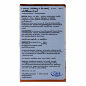 | Curcuma kruid (als 500 mg curcumawortel extract) Bevat 95% curcumines | 20.000 mg