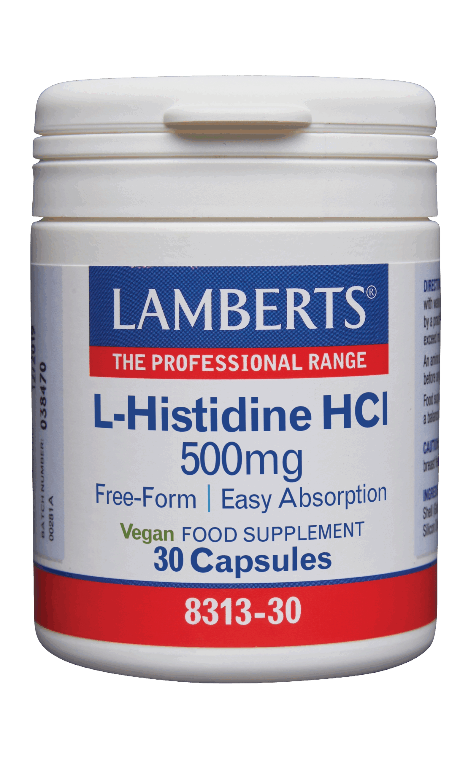 L-Histidine HCl, Capsule (Gelatine), antiklontermiddel (Magnesiumzouten van vetzuren), Siliciumdioxide.