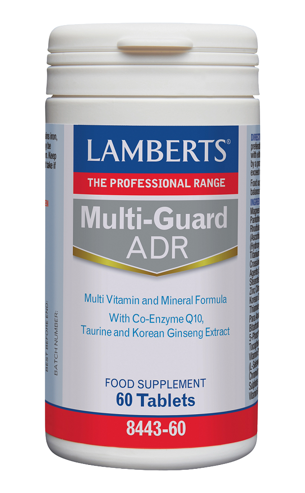 Calciumcarbonaat, magnesium (oxide & citraat), cellulose, pantotheenzuur (calciumpantothenaat), Rhodiola Rosea extract (rozewortel), Vitamine C (ascorbinezuur), Tabletcoating (glansmiddelen: calciumcarbonaat & isomalt), hydroxypropyl methylcellulose, kleurstof: ijzeroxide), Antiklontermiddelen (siliciumdioxide, stearinezuur en magnesiumstearaat), crosslinked cellulose gom, niacine (nicotinamide), taurine, zinkcitraat, ijzer (ferrofumaraat), Koreaanse (panax) ginseng extract, thiaminemononitraat, co-enzym Q10, para-aminobenzoezuur, cholinebitartraat, inositol, vitamine B6 (pyridoxaal-5-fosfaat), vitamine E (d-alpha-tocopherol), riboflavine, vitamine D3, Vitamine B12 (cyanocaobalamine), selenium (l-selenomethionine & natriumseleniet), chroompicolinaat, mangaanulfaat, kopersulfaat, foliumzuur, vitamine K1, kaliumjodide, biotine.