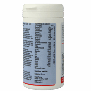 Vulstof (Cellulose), Calciumcarbonaat, Cholinebitartraat, Magnesiumoxide, Ascorbinezuur, Tabletcoating (Calciumcarbonaat, Hydroxypropyl Methylcellulose & Isomalt, Kleurstof: IJzeroxiden), Antiklontermiddelen (Magnesiumzouten van vetzuren, Siliciumdioxide & Stearinezuur), IJzer (Ferrofumaraat), Zinkcitraat, dl-alfa Tocoferol Acetaat, Bevochtigingsmiddel (Crosslinked Cellulose Gom), Nicotinamide, Calciumpantothenaat, Cholecalciferol*, Inositol, Pyridoxine Hydrochloride, Kopersulfaat Thiaminemononitraat, Riboflavine, Mangaansulfaat, Fyllochinon, Calcium-L-methylfolaat, Chroompicolinaat, Cyanocobalamine, Natrium Seleniet, Kaliumjodide, Biotine.